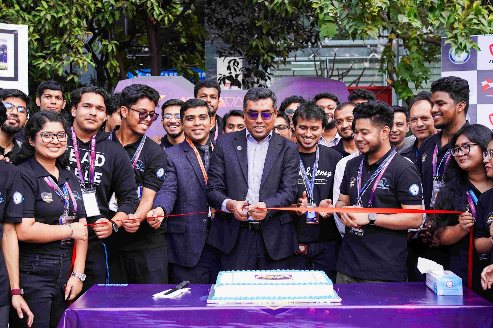 The opening day commenced at 9:00 AM with a ceremonial cake cutting, followed by motivational visits from distinguished faculty members, including Dr. Md. Abdur Rahman, Pro Vice-Chancellor and Professor, Dr. Md. Saniat Rahman Zishan, Professor and Director, Faculty of Engineering, Mr. Abhijit Bhowmik, Associate Professor and Special Assistant of the Office of Student Affairs (OSA), Md. Mazid-ul-Haque, Assistant Professor and Special Assistant (OSA), and S. M. Abdullah Shafi, Lecturer and Special Assistant (OSA).