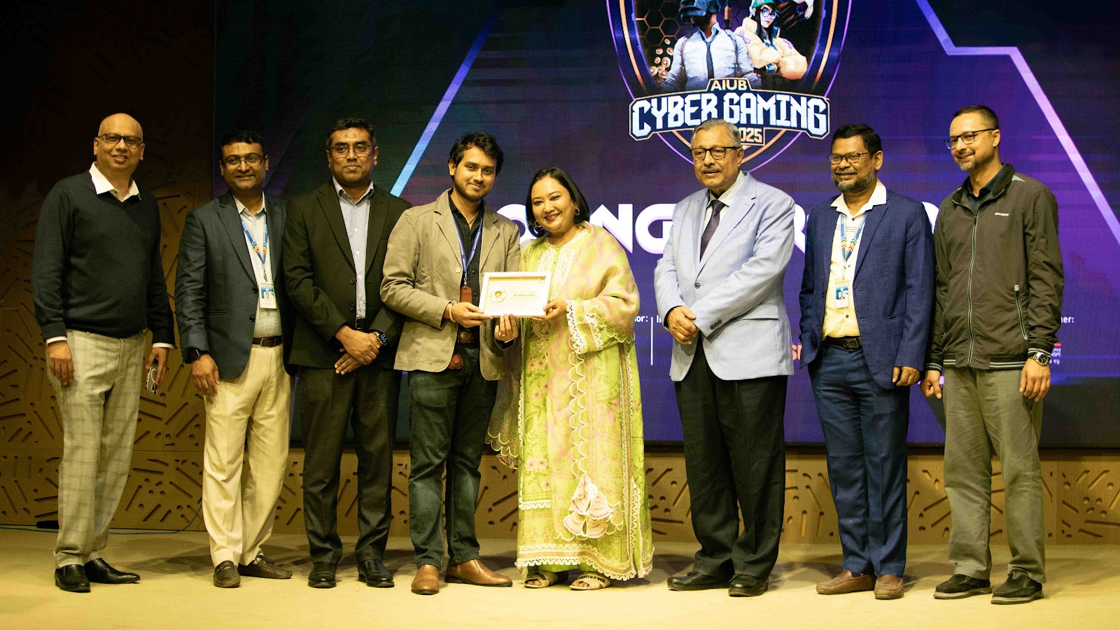 The closing ceremony started at 3:00 PM on the final day, attended by distinguished guests including Ms Nadia Anwar, Founder Member and Chairman of the Board of Trustees, and Vice Chancellor Professor Dr. Saiful Islam, Dr. Md. Abdur Rahman, Pro VC and Professor, Dr. S. A. M. Manzur H. Khan, Professor and Proctor, Mashiour Rahman Senior Associate Professor, Dean-In-Charge Faculty of Science & Technology Prof. Dr. Dip Nandi, Associate Dean, Faculty of Science and Technology, Associate Professor Abhijit Bhowmik from the Department of Science and Technology, along with other directors, department heads, and many other faculty members. Speakers praised the event’s scale, the professional dedication of the ACC, and the rising skill requirements in gaming. The ceremony concluded with the distribution of prize money and crests to winning participants, 3 best campus ambassadors, and 3 university clubs — AIUB Photography Club, AIUB Esports Club, and AIUB Performing Arts Club — a group photo session, and a unique drone shot featuring club members forming the letter “ACC,” followed by a performance and concert by AIUB Performing Arts Club. Overall, the fest created huge positive vibe on the campus and outside, making it a huge success.
