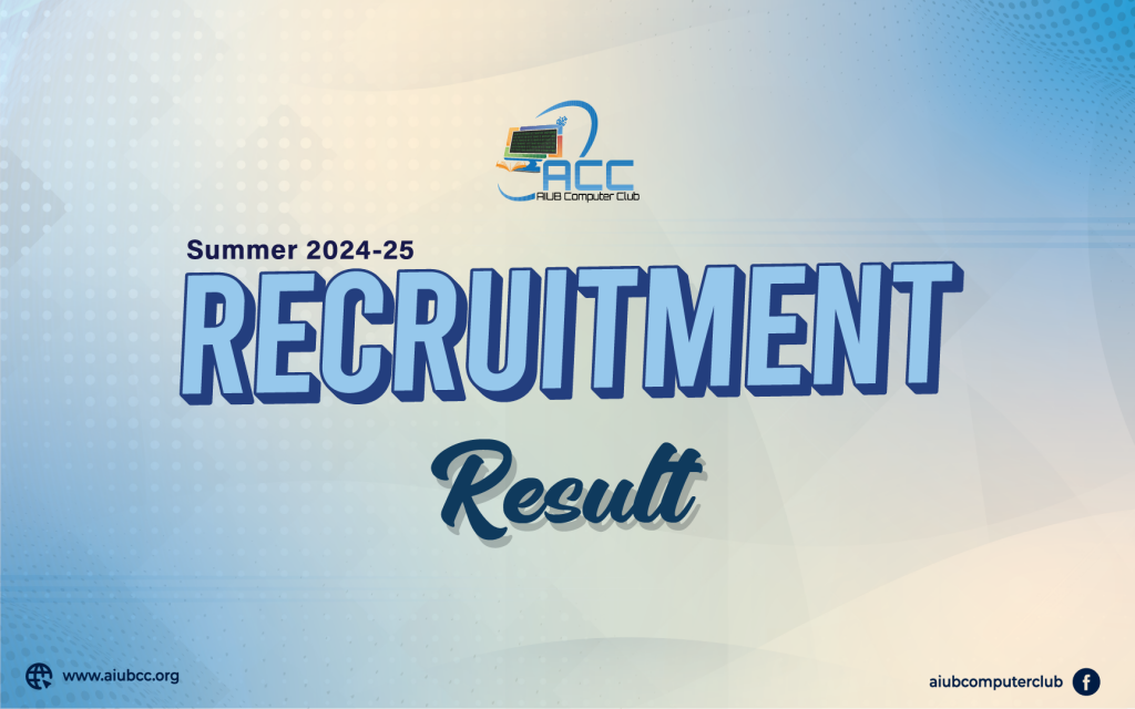 AIUB Computer Club is thrilled to announce the final list of selected members for the Summer 24-25 Recruitment. Out of the total 420+ applicants, 61 individuals have been selected as ACC members.